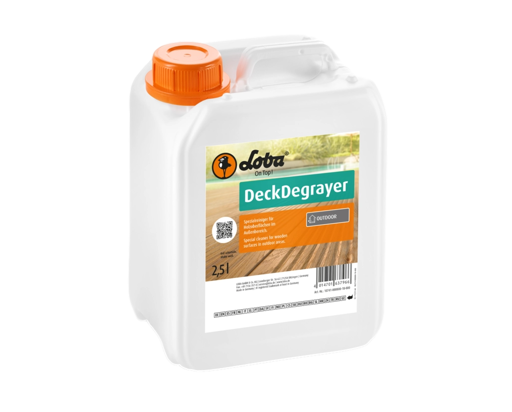 DeckDegrayer sobib vana kulunud halli kihi eemaldamiseks väljas asuvatelt puitpindadelt