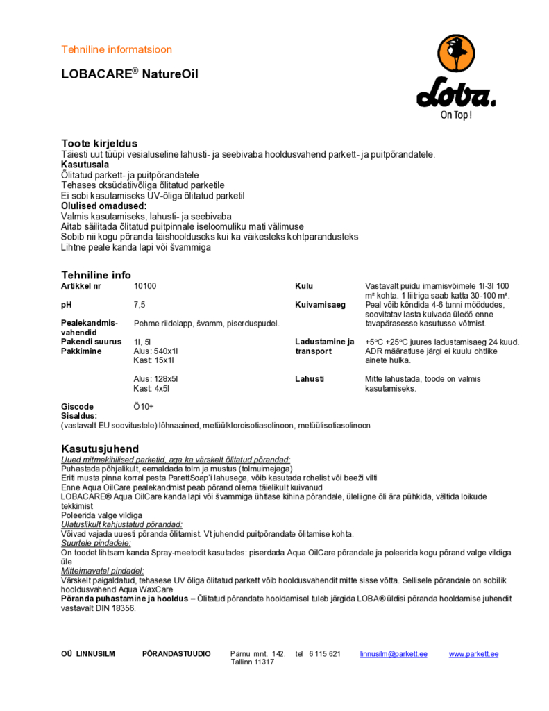 Tehniline info NatuteOil