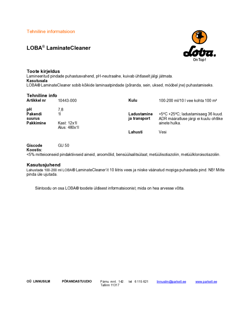 Tehniline info LaminateCleaner