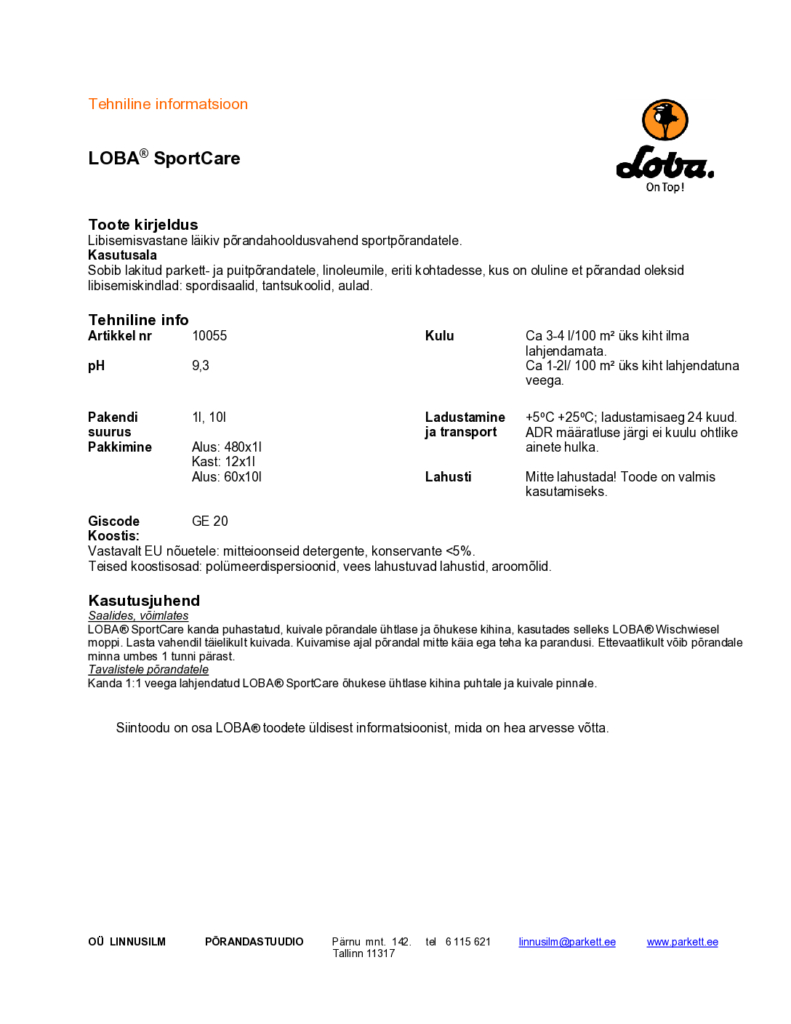Tehniline info SportCare